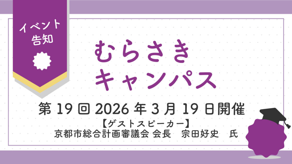 第19回は京都市総合計画審議会 会長 宗田好史氏(京都府立大学名誉教授)が登壇予定。